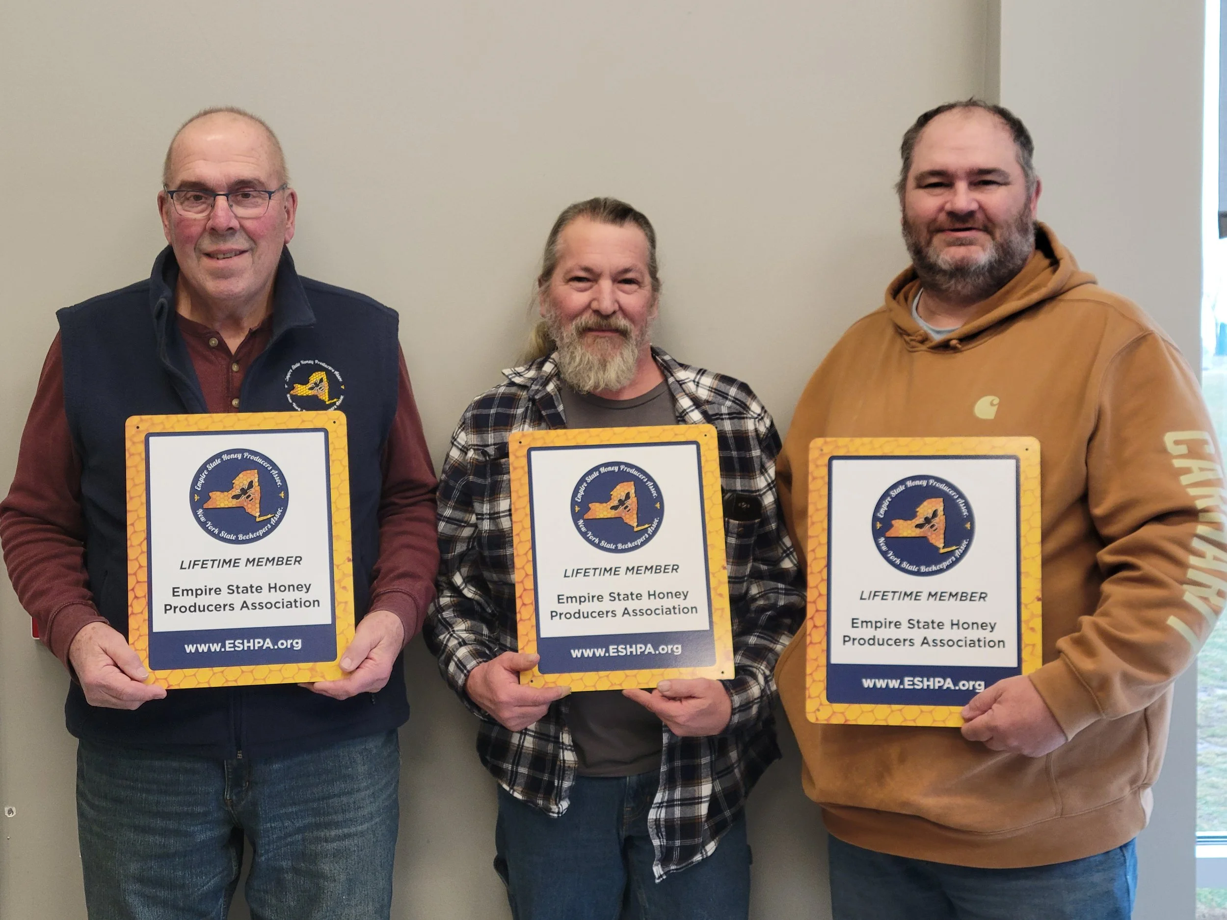 Last month in Geneva, the Board of Directors had their in person meeting. We were happy to unveil our new Lifetime Member plaques! Fortunately, three board members are also Lifetime Members and received theirs at the time! If you are a Lifetime Member, please come to one of our in person meetings and we'll give you a plaque to proudly hang in your place of business or your honey house!